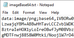 After opening the output text file in a text editor of choice, we can see that the Base64 encoded string was indeed generated and matches the output from our first attempt, when the string was output to the PowerShell window. Notice the required prefix is also included in the text! Once again, the screenshot has been trimmed to reduce space in this post.