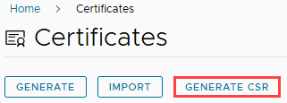 Click on the “Generate CSR” button, located beneath the “Certificates” heading.