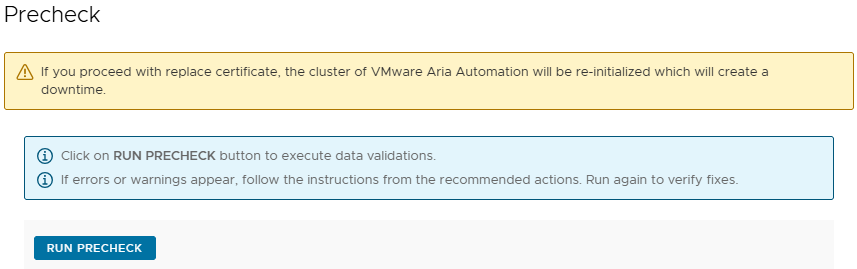 The “Precheck” window appears. Click on the “Run Precheck” button to perform checks and wait for the process to complete.