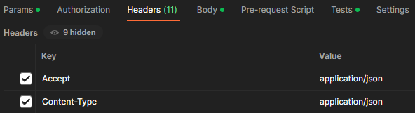 Click on the “Headers” tab. Notice the key value pair boxes are empty. Populate two rows with the below: