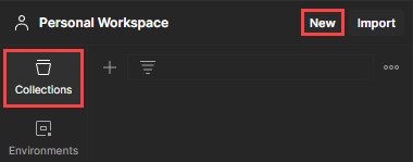 Click on the “Collections” button located on the left side of the page. If you logged-into Postman with an account from the beginning, you likely created a Workspace and Collection already. If you would like to create a new Collection to help organize your requests, simply click on the “New” button located to the right of your Workspace, then click on the “Collection” button.