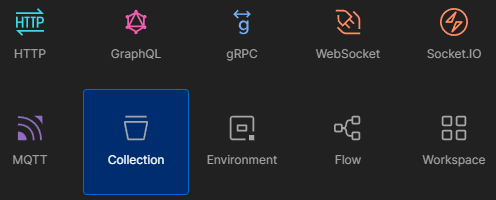 First, click on your Collection from left-side pane – just to set our working directory. Next, click on the “New” button, then click on the “HTTP” button to create a new HTTP-Based API Request. The “Untitled Request” tab opens.