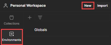 Click on the “Environments” button, located on the left-side of the page, then click on the “New” button, located to the right.