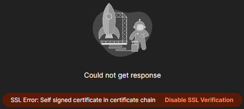 Depending on your Aria Automation environment, you may not have an internally signed SSL certificate bound to the application. If this is the case, Postman may return an error, “SSL Error: Self signed certificate in certificate chain“. If this is expected or acceptable for you, then simply click on the “Disable SSL Verification” link to proceed. This is a potential security risk, so exercise your own discretion to determine if this is acceptable. Given that I am running a lab environment, I have no concerns with bypassing SSL Verification and will click on the link to proceed.