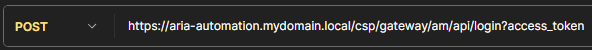 Click inside the “Enter URL or paste text” field, located to the right of the request method you just selected. Type or paste the below and replace “%vra-fqdn%” with the FQDN of your Aria Automation instance (i.e., https://aria-automation.mydomain.local)